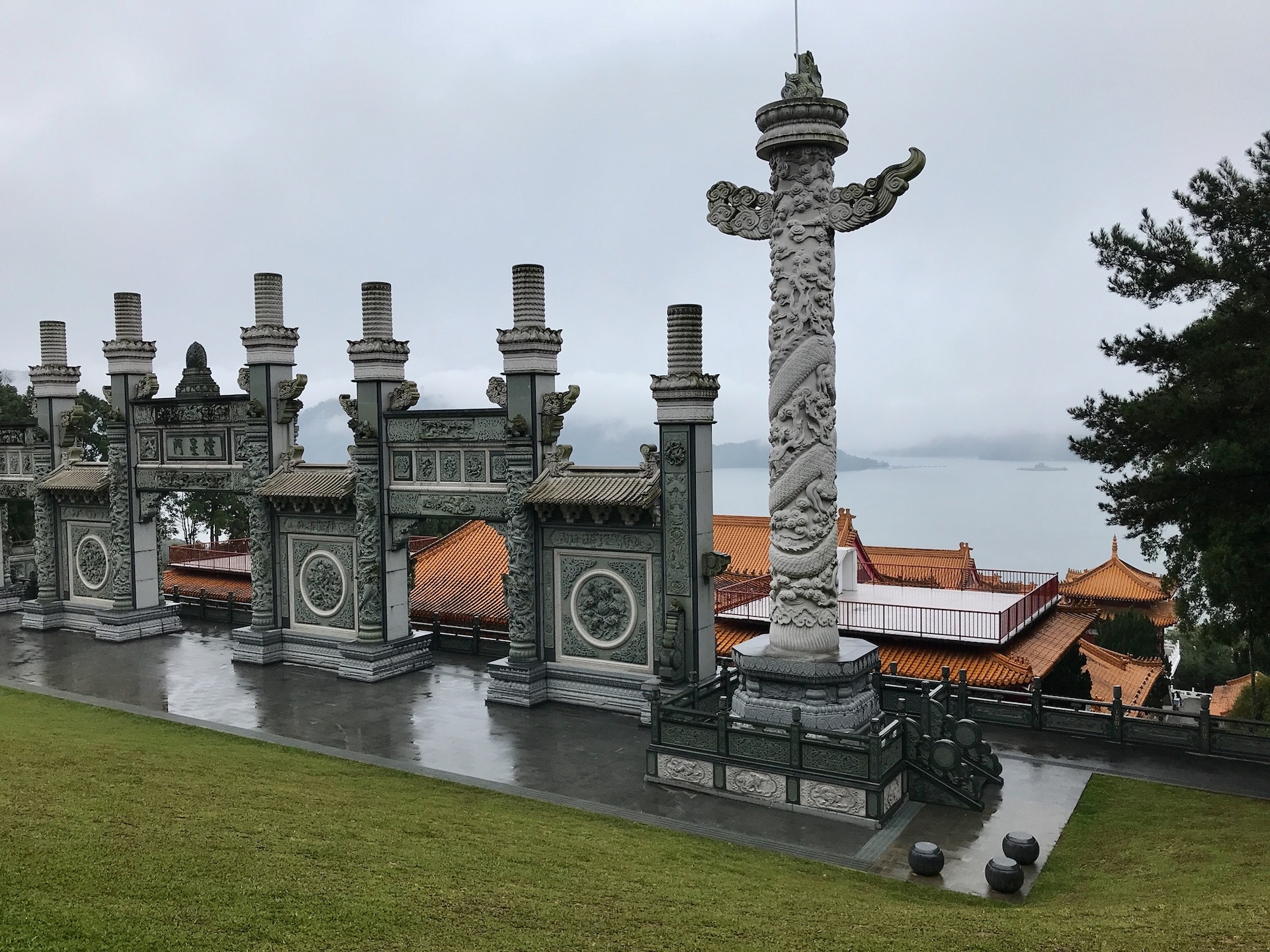 Podczas naszego pobytu nad Tajwan nadciągnął monsun, który trochę popsuł widoki. Na szczęście na kilka godzin rano otworzyło się okno pogodowe, co pozwoliło nam obejrzeć jezioro z tarasu hotelu, przepłynąć statkiem do Shuishe, przespacerować deptakiem wzdłuż jeziora i obejrzeć świątynię Wenwu. Miejscem, którego nie odwiedziłyśmy, była pagoda Ci’en.